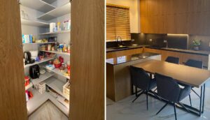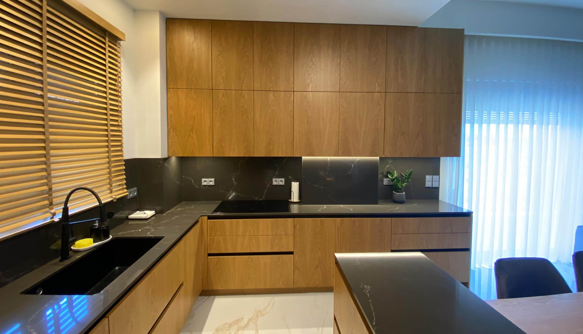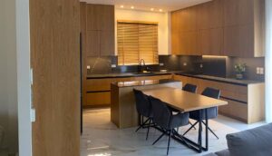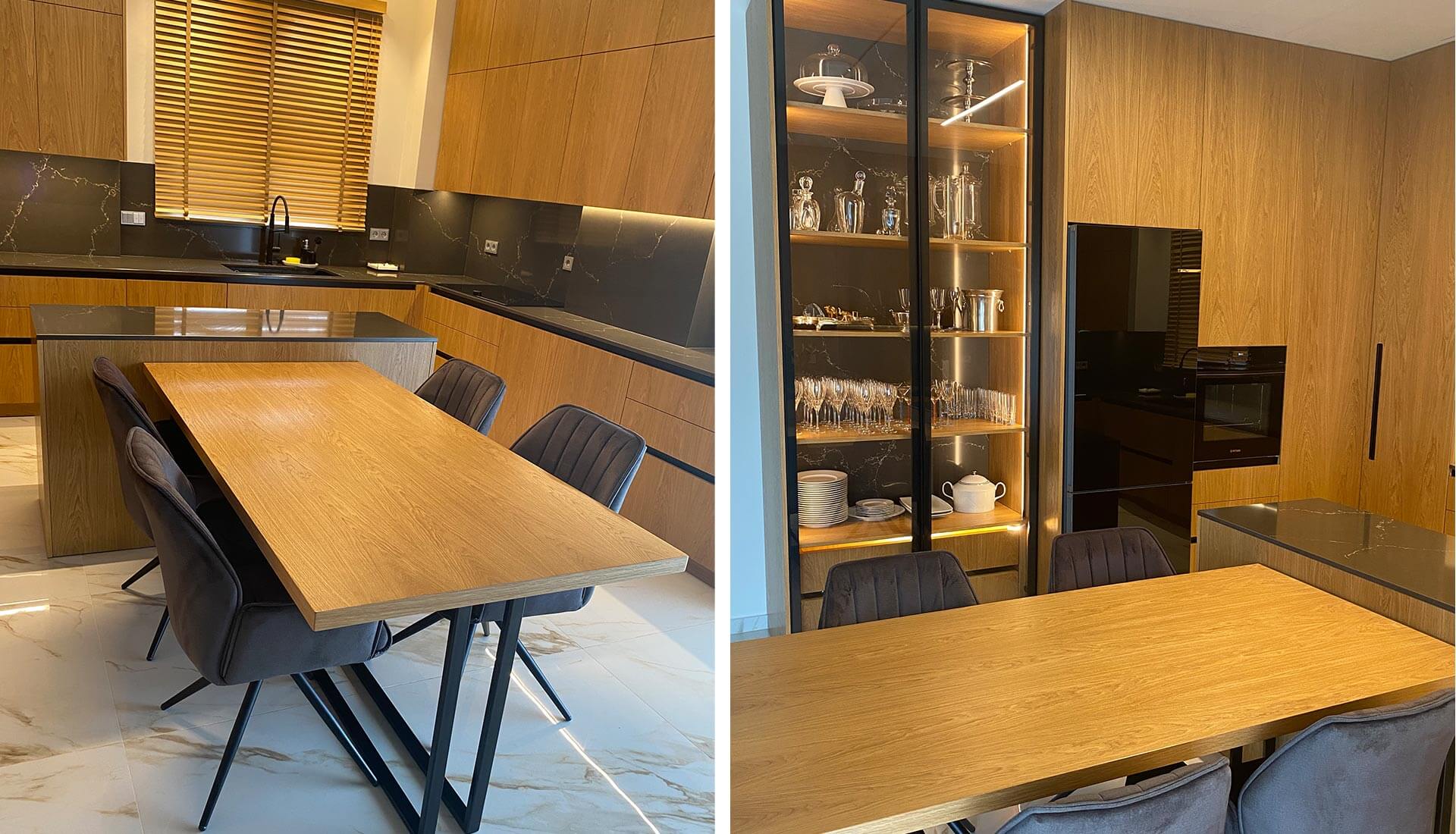 Η Lignum συνδυάζει το ζεστό ξύλο με τις μοντέρνες μαύρες λεπτομέρειες, δημιουργώντας έναν χώρο που αποπνέει κομψότητα και θαλπωρή. Η φωτισμένη γυάλινη βιτρίνα λειτουργεί σαν σημείο αναφοράς, αναδεικνύοντας αντικείμενα με εκλεπτυσμένο τρόπο. Οι καθαρές γραμμές και τα ποιοτικά υλικά τονίζουν τον minimal χαρακτήρα, ενώ το άπλετο φως και οι ήρεμες αποχρώσεις προσφέρουν μια αίσθηση αρμονίας και ισορροπίας.
